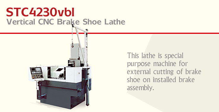 This lathe is special purpose machine for machining front & rear brake shoe used on automobile industry. Features. Single spindle, symmetrical-double-turrets and line-up tooling are available. Tool holders with high rigidity are made by ourselves according to actual situation of workpiece. All key components are imported form foreign well-known builders so that high reliability, big torque and high rigidity can be achieved. Fanuc 0i-Mate, AC main drive and AC feed servo motor are adopted. Special purpose clampers are available for clamping two workpieces simultaneously. With aid of double-turret structure, end surface and circular surface of workpiece can be machined at one time.